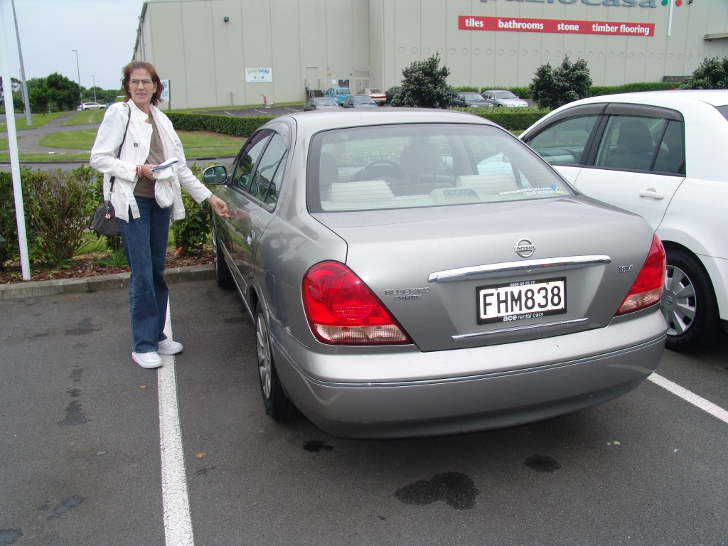 Helaas was de bestelde Toyota Corrola niet beschikbaar en zijn we geupgraded en hebben nu een luxere Nissan Bluebird . Wel even wennen aan de auto en het links rijden. Vooral als je teveel naar links gaat dan ligt daar een irritante geribbelde verfstreep. Met de TomTom een peuleschilletje om naar ons Motel, Sai Motels in Ellerslie een buitenwijk van Auckland te rijden. Even, nou ja even geld gepint en naar een supermarkt (24/7 geopend) gegaan om wat inkopen te doen. Daarna terug naar het motel en nog even videocontact gehad met de andere kant van de wereld. Alsof je om de hoek zit. Jammer dat het weer hier veel op Nederland lijkt…rrregen.